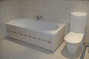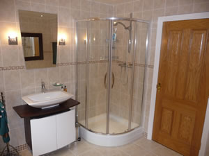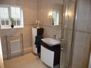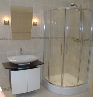 Manhattan shower enclosure, Laufen furniture and Grohe taps with Pilkingtons tiles |