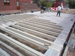 is sharp sand and cement in a wet mix that is brushed over the area and
