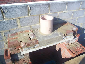Next we will start blocking in the chimney pipe and will fill with vermiculite.