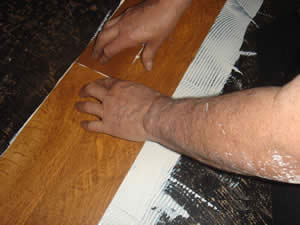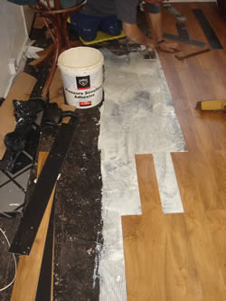 putting down just enough adhesive to lay 4 t0 5 stripsw in width |