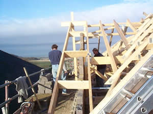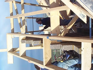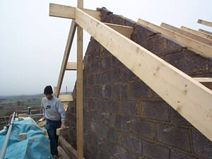 got most of the trusses up and the barge rafter - now the brickies are working on the gable ends